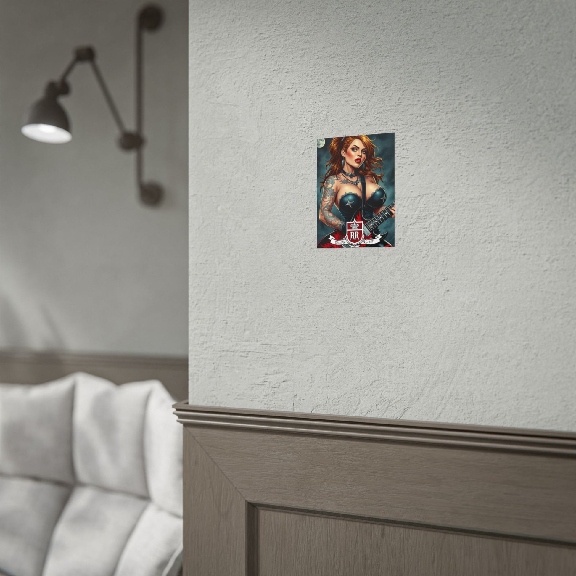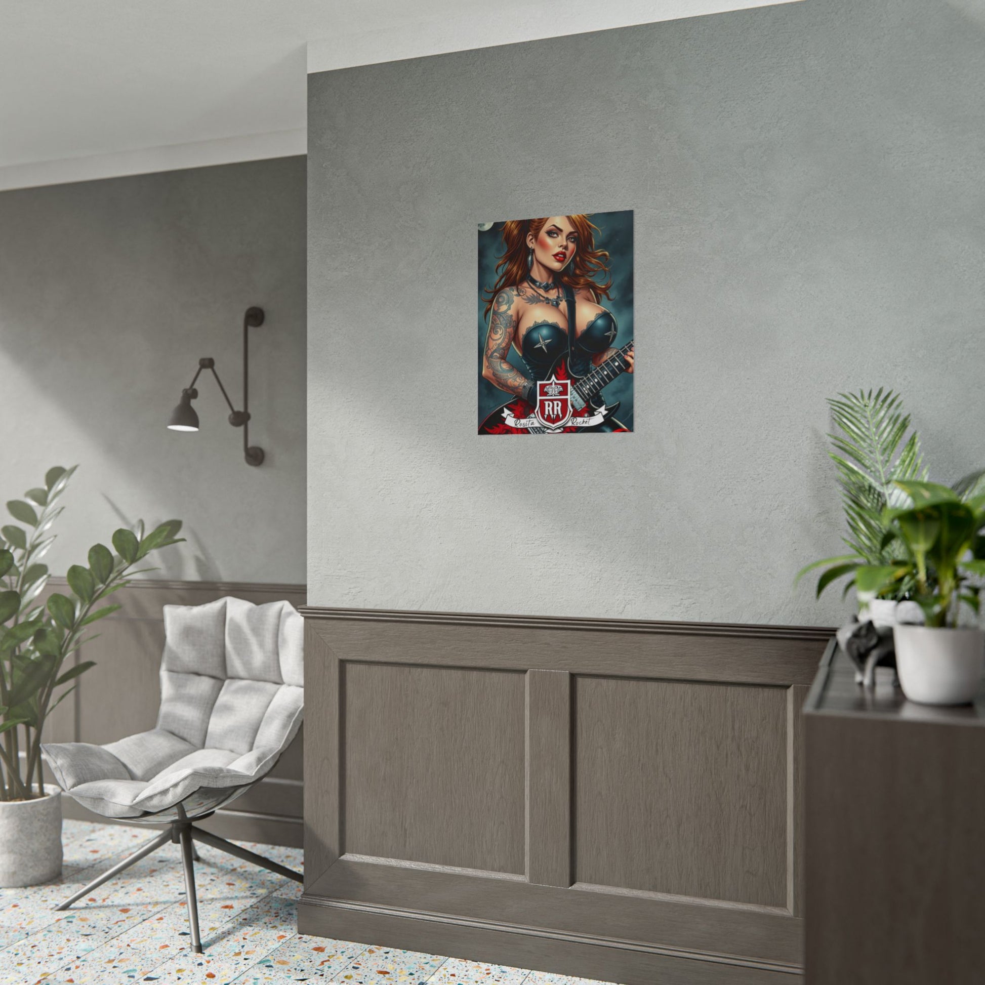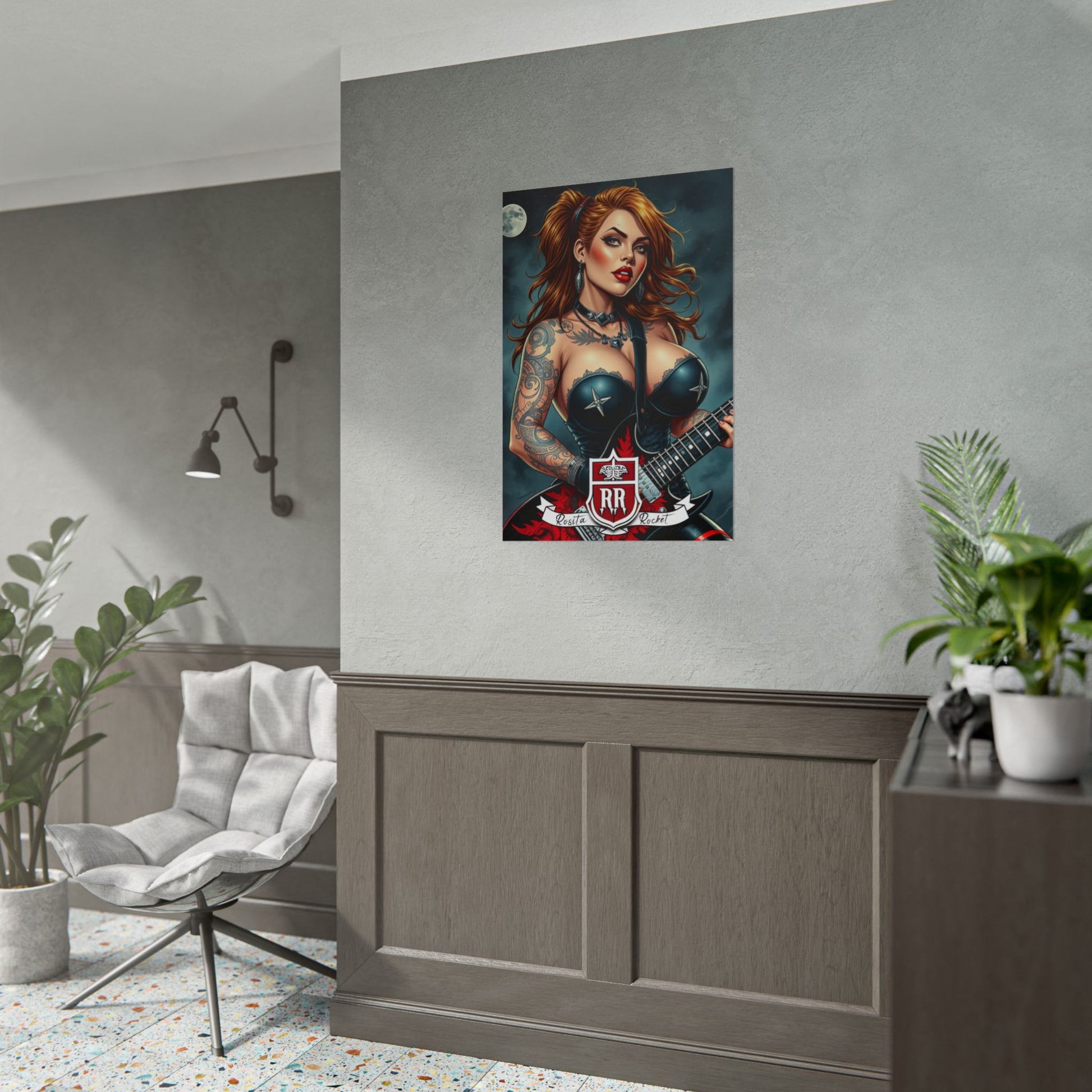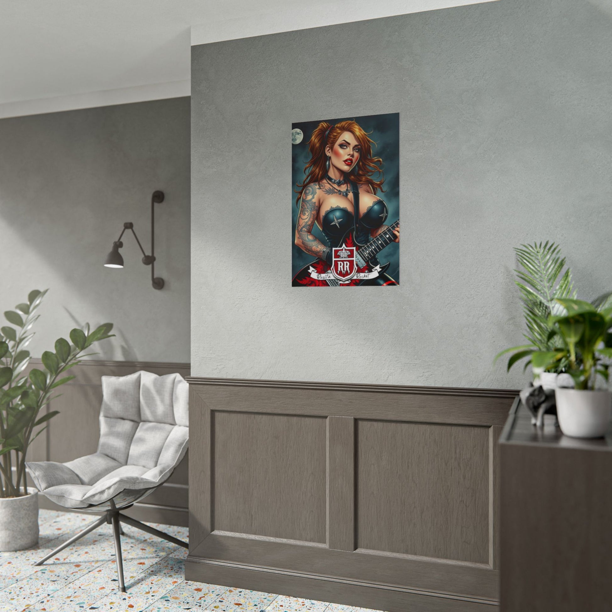 This rolled poster brings bold, rock‑ready energy into any space. Printed with rich giclée inks on your choice of semi‑glossy or matte paper, the illustration’s deep colors and crisp details hold up over time and light exposure. The artwork evokes late‑night venues, amp hum, and a defiant, glamorous lead who owns the stage — a striking focal point for studios, music rooms, or walls where attitude matters. Choose orientation and size to fit your wall; shipped rolled so you can frame or mount it the way you like.
